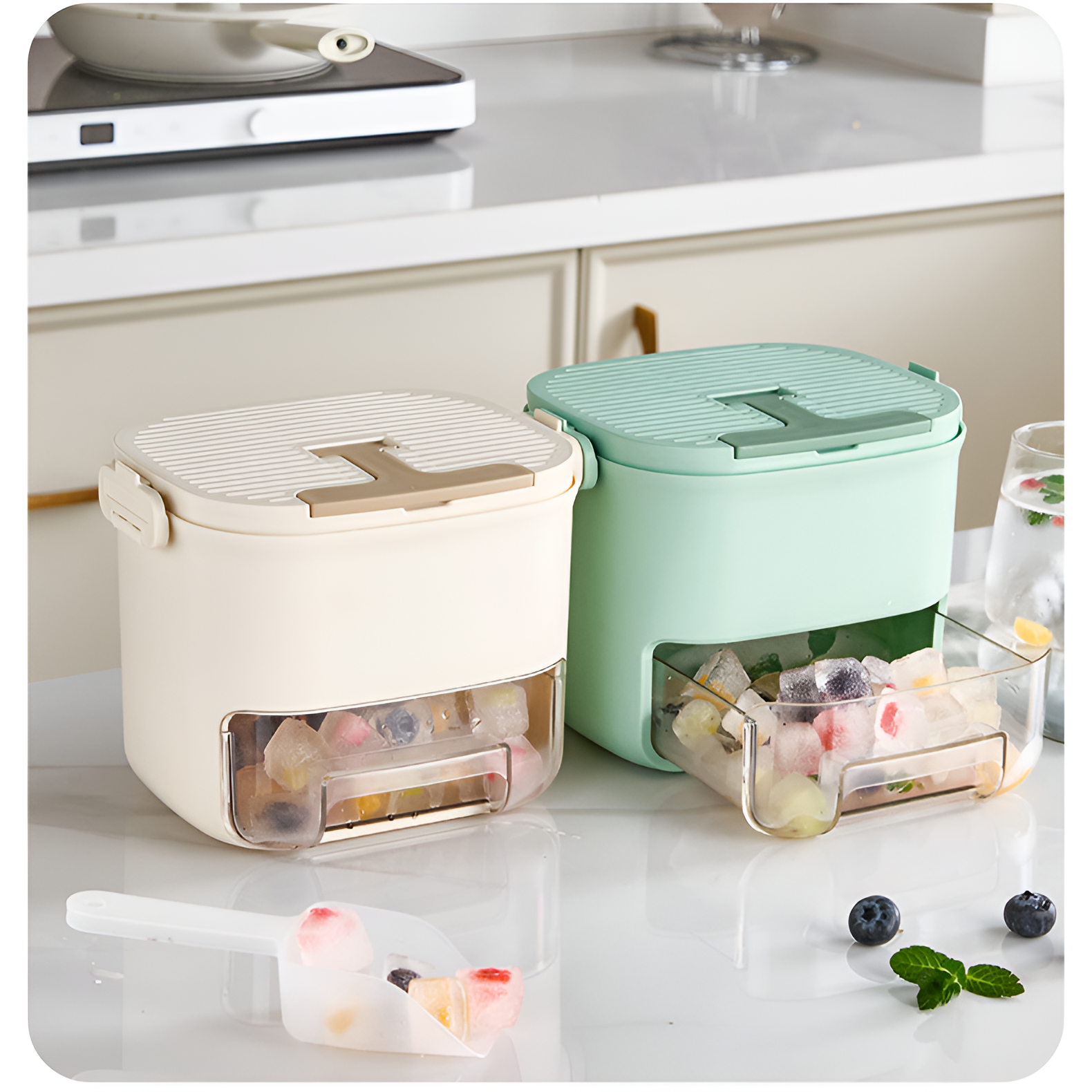 User-friendly press type ice cube box for daily use